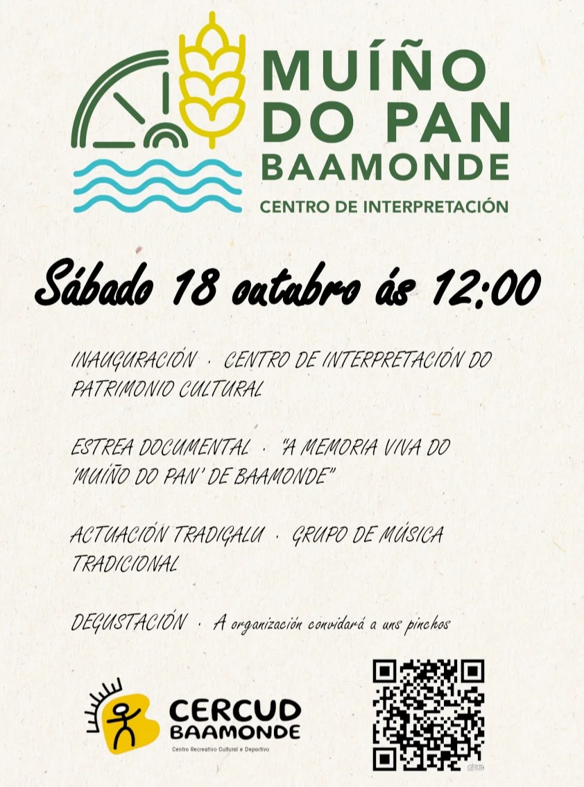 12:00 Inauguración do centro de interpretación do Muíño do Pan de Baamonde.