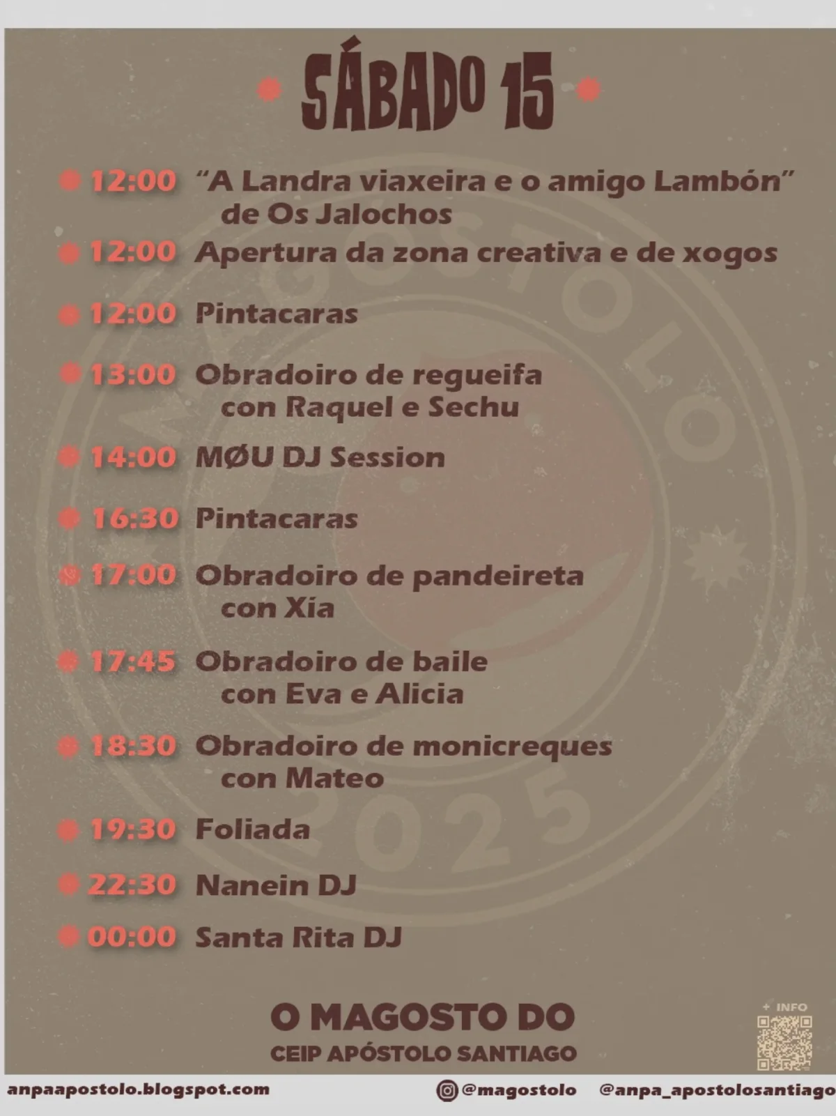 sábado, día 1513:00 Obradoiro de regueifa con Raquel e Sechu.