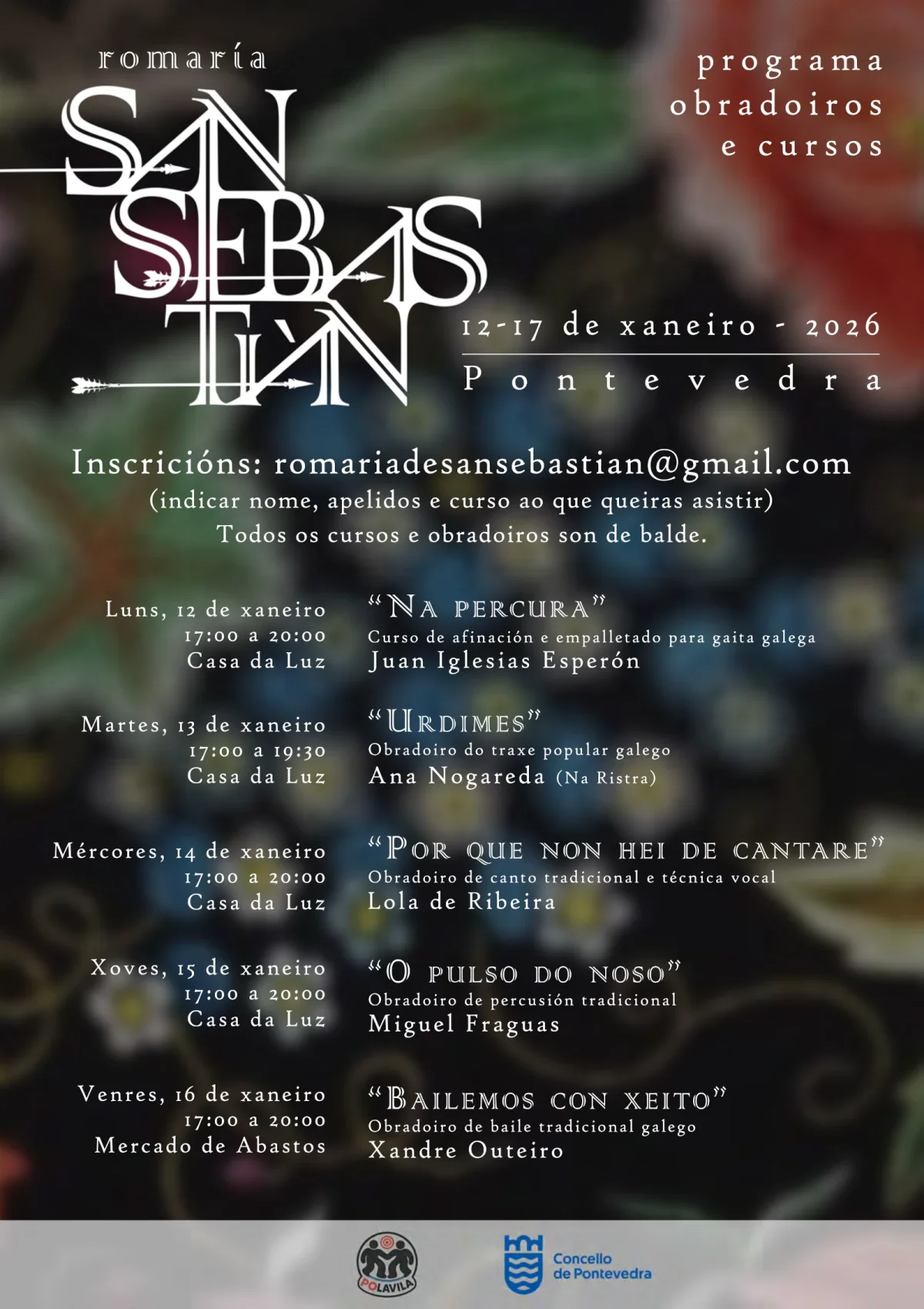 Programación completa de obradoiros e información para inscribirse na imaxe de abaixo.