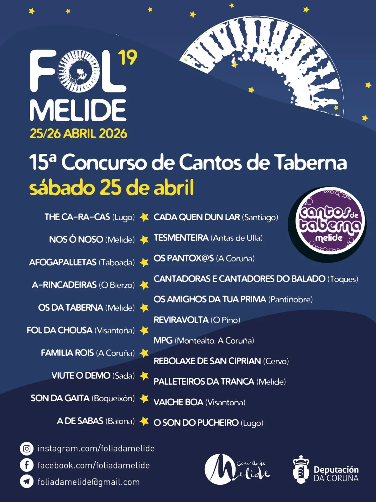 12:00 XV Concurso de cantos de taberna. Zona dos viños. Máis información na imaxe de abaixo.