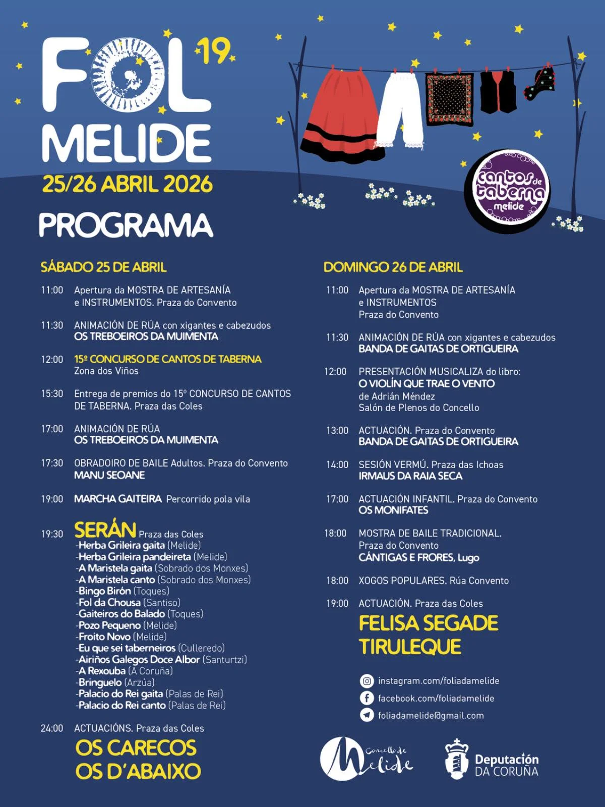 19:00 Actuacións de Felisa Segade e Tiruleque. Praza das coles.