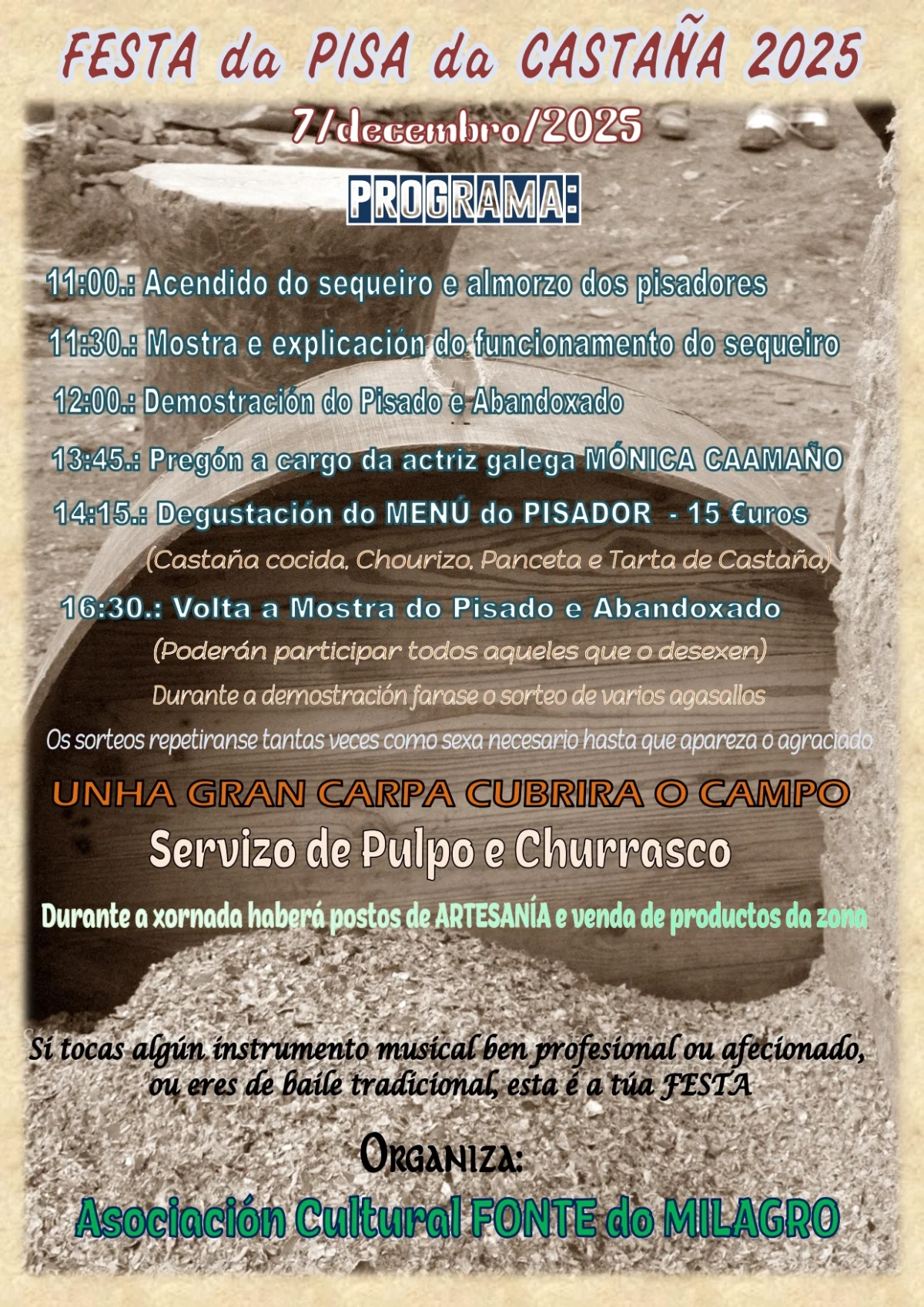 Inscrición e inscricións aquí. Menú: castaña cocida, chourizo, panceta e torta de castaña.